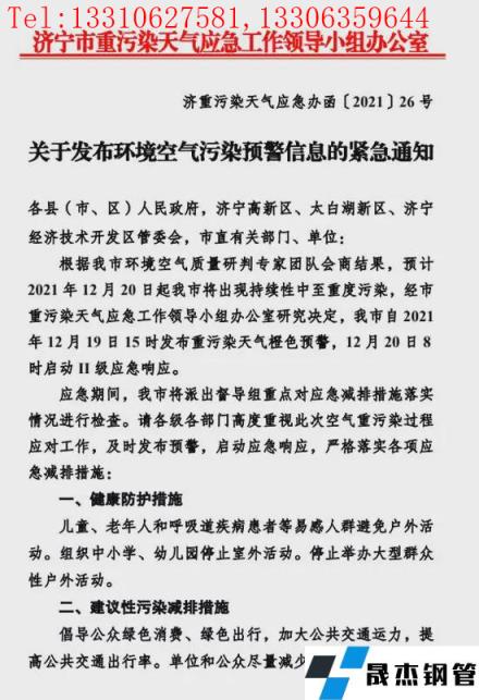 根據濟寧市環境空氣質量研判專家團隊會商結果,預計2021年12月20日起濟寧市將出現持續性中至重度污染,經市重污染天氣應急工作領導小組辦公室研究決定,濟寧市自2021年12月19日15時發布重污染天氣橙色預警,12月20日8時啟動II級應急響應。