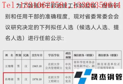 免責聲明:本網站(山東聊城晟杰無縫鋼管廠m.cars-guide.cn)刊載的“大變動!涉及多家鋼企董事長、多地市委書記、北大系主任!”等均源于網絡,版權歸原作者所有,且僅代表原作者觀點,本文所載信息僅供參考。轉載僅為學習與交流之目的,如無意中侵犯您的合法權益,請及時聯系刪除。本網站刊登此篇文章并不意味著本站贊同其觀點或證實其內容的真實性,我們不對其科學性、嚴肅性等作任何形式的保證。如果侵犯了您的版權,請盡快聯系我們予以撤銷,謝謝合作!