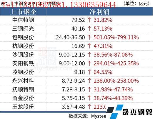 免責聲明:本網站(山東聊城晟杰無縫鋼管廠m.cars-guide.cn)刊載的“2021年鋼企利潤創新高,中信特鋼實現凈利近80億”等均源于網絡,版權歸原作者所有,且僅代表原作者觀點,本文所載信息僅供參考。轉載僅為學習與交流之目的,如無意中侵犯您的合法權益,請及時聯系刪除。本網站刊登此篇文章并不意味著本站贊同其觀點或證實其內容的真實性,我們不對其科學性、嚴肅性等作任何形式的保證。如果侵犯了您的版權,請盡快聯系我們予以撤銷,謝謝合作!