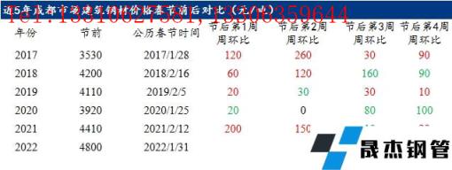 進入2022年,隨著原料價格上漲,冬奧會限產,以及房地產政策稍有放寬等利多因素下,鋼材價格整體呈現震蕩偏強走勢。截止1月25日,成都市場螺紋鋼價格4800元/噸,較2021年春節前價格上漲390元/噸,漲幅8.84%,為近年來最高水平。此外,由于春節前后省外無縫鋼管廠資源流入同比將大幅減少,市場對節后預期較好,川內無縫鋼管廠自儲比例小幅增加,且給予的冬儲政策多為資金優惠政策,讓利幅度有限;恐高心理,加之冬儲資源有限,商家整體冬儲量相對較少。從歷史價格數據情況來看, 2020年受突發公共安全事件影響,需求釋放延緩,庫存大幅累計,鋼價持續走弱, 除此之外,其余年份春節后鋼價多以偏強運行態勢。2022年春節后,在眾多利好因素下,預計四川建材價格或偏強運行為主。