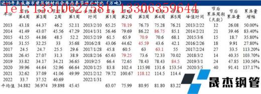回顧近10年來成都建筑鋼材社會庫存春節前后對比,成都建筑鋼材庫存平均累庫量在41.17萬噸左右,累庫幅度在90.88%,2020年累庫較為明顯。2022年春節放假較早,川內短流程無縫鋼管廠停產放假時間提前,加之北方資源到貨同比減少,節前成都建筑鋼材社會庫存累積緩慢。近10年來春節后成都建筑鋼材庫存峰值均出現第3-4周,累庫周期約21天。節后庫存峰值最高為2020年近158.05萬噸,其次是2021年的118.12萬噸。從川內無縫鋼管廠停產檢修計劃,以及省外無縫鋼管廠資源到貨情況來看,預計節后四川建材庫存累積周期或較去年縮短,且庫存峰值亦明顯下降。