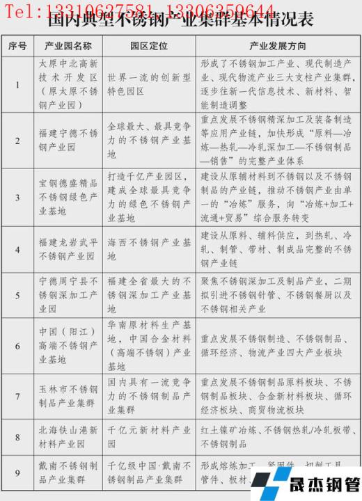 除以上四家國內領先的不銹鋼企業外,我國國內已建成相對比較成熟的不銹鋼產業集群,這些不銹鋼產業集群聚合冶煉、熱軋、冷軋、制品、市場、物流等領域,再加上焦炭、鎳鐵等前端配套的鏈式產業在全國的分布,充分考慮不銹鋼產業區域布局再平衡的問題,已形成18個典型的不銹鋼產業集群。