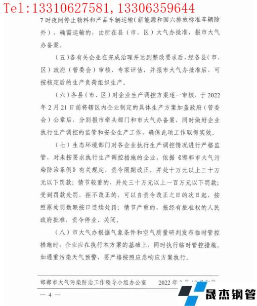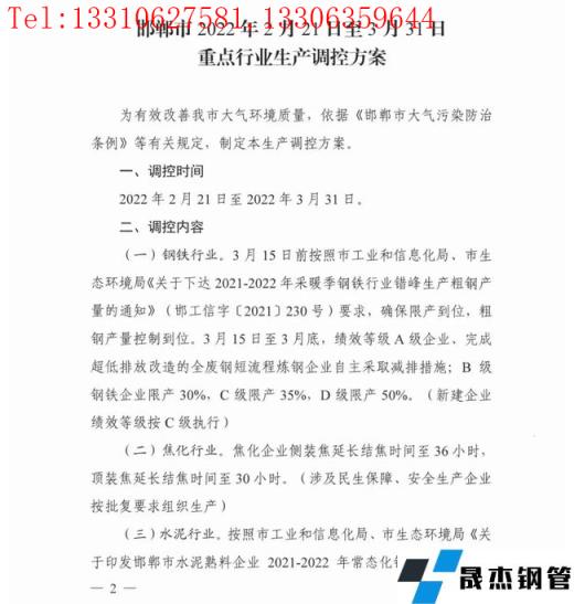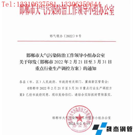 日前,邯鄲市大氣污染防治工作領(lǐng)導(dǎo)小組辦公室印發(fā)了《邯鄲市2022年2月21日至3月31日重點(diǎn)行業(yè)生產(chǎn)調(diào)控方案》。方案中對(duì)2022年2月21日至3月31日時(shí)段內(nèi)的鋼鐵、焦化、水泥、獨(dú)立球團(tuán)、鑄造、炭素等重點(diǎn)行業(yè)開(kāi)展停限產(chǎn)措施。