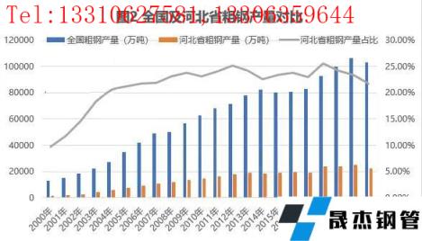 河北省在中國鋼鐵行業(yè)中占據(jù)著舉足輕重的位置,從河北省鋼鐵產(chǎn)量數(shù)據(jù)來看,2021年,河北省生鐵產(chǎn)量為20202.98萬噸,同比下降11.8%,占全國生鐵產(chǎn)量的23.3%(詳見圖1);粗鋼產(chǎn)量為22496.45萬噸,同比下降9.9%,占全國粗鋼產(chǎn)量的21.8%(詳見圖2);厚壁管產(chǎn)量為29559.38萬噸,同比下降1.8%,占全國厚壁管產(chǎn)量的22.1%(詳見圖3)。