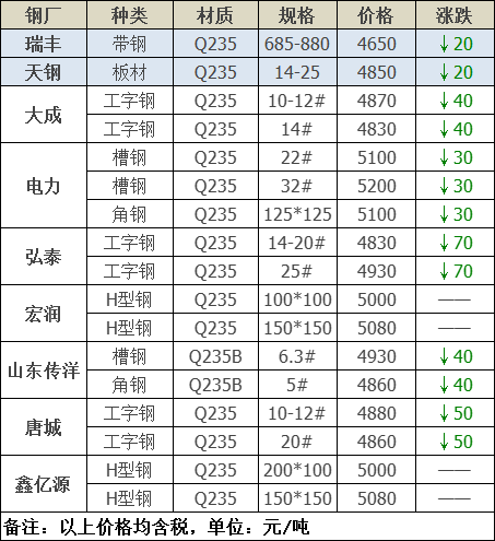下調7家,占比77.8%,調價幅度20-70元/噸;
