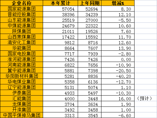 據中國煤炭工業協會統計與信息部初步統計,2021年,全國原煤產量超3000萬噸企業共20家。其中,3000萬噸-5000萬噸企業5家,5000萬噸-1億噸企業9家,1億噸-2億噸企業1家,2億噸-4億噸企業4家,5億噸以上企業1家。20家企業產量合計為26.56億噸,同比增加7869.9萬噸,增長3.1%,占全國原煤產量的65.3%。產量及排名情況如下:
