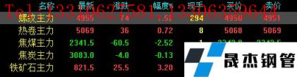 今日螺紋主力期貨漲74,收報(bào)4955,漲幅1.52%;熱卷主力漲36,收報(bào)5069,漲幅0.72%;焦煤主力跌60.5,收報(bào)2341.5,跌幅2.52%;焦炭主力跌4,收報(bào)3083,跌幅0.13%;鐵礦石主力漲25.5,收報(bào)821.5,跌幅3.2%。