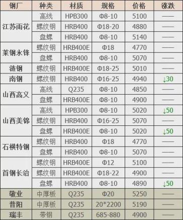 下調(diào)3家,占比23%,調(diào)價幅度30-50元/噸;