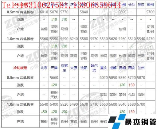 全國23個主要市場1.0mm 冷軋板卷平均價格5597元/噸,較上個交易日下調7元/噸。