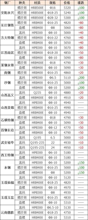 跌幅最大為沙鋼線螺;