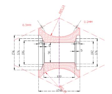 5 BR相對于A孔型來說,有較小的平均減徑率2.67%和較小的橢圓系數(shù),主要用于89mm~141.3mm規(guī)格的厚壁管的軋制。較小的壓下率和較小的橢圓系數(shù)能有效防止管周方向上的張力不均引起的內(nèi)六方缺陷。