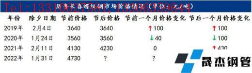 從近三年的春節前后情況來看,如圖一所示,2019年及2021年長春螺紋價格均以上漲為主,漲幅均在100元/噸以上,這與當地節前鋼材需求停滯節后下游復工對鋼材需求回暖的季節性規律正相吻合,而2020年節后價格下跌則是因為突發公共衛生事件導致需求無法正常釋放所致,但從后期的表現來看,也僅僅是推遲了價格的上漲時間,來得晚但并未缺席。