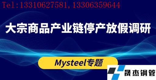 ◎ 調研全國45家冷軋鍍鋅彩涂生產企業結果顯示,停產時間多集中在1月24日,復產時間集中在2月7日左右,部分偏北方地區在2月20日。多數無縫鋼管廠家檢修與去年相比基本持平,產量總體影響不大,部分減量主要體現在華北地區,預計影響鍍鋅產量9.2萬噸,較去年同期基本持平。詳情>>