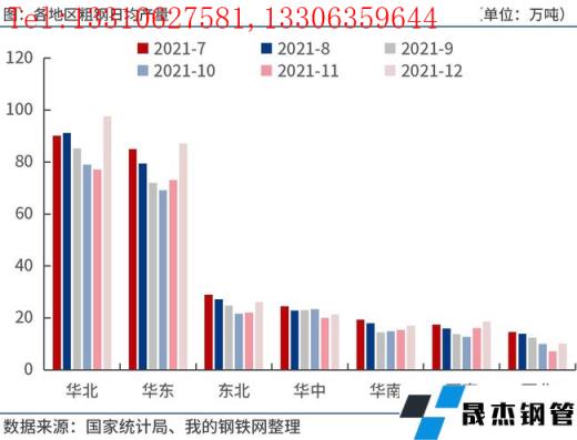 2021年12月份,華北、華東、東北、華中、華南、西南、西北等地區(qū)粗鋼日均產量分別為97.6萬噸、87.1萬噸、26.2萬噸、21.4萬噸、17.0萬噸、18.7萬噸和10.2萬噸,分別較上月增加20.5萬噸、14.0萬噸、4.1萬噸、1.3萬噸、1.6萬噸、2.6萬噸和3.0萬噸。