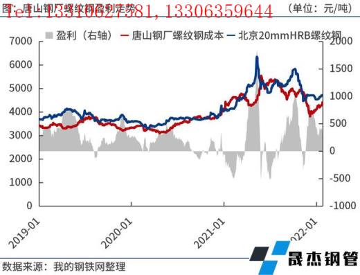 成本方面,據筆者測算,1月底唐山長流程無縫鋼管廠家螺紋鋼噸鋼毛利(成本不包含三項費用、折舊等)300元/噸左右。由于1月份原燃料價格漲幅高于鋼價,導致無縫鋼管廠家效益有所下滑,部分電爐廠因虧損減產。