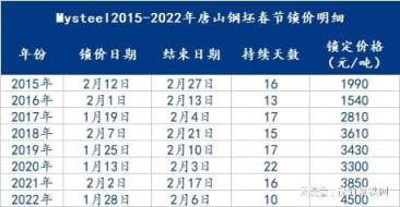 2022年1月28日唐山主流鋼坯價格進(jìn)入鎖價狀態(tài),下面我們先回顧一下歷年鋼坯價格的鎖價時間點(diǎn):
