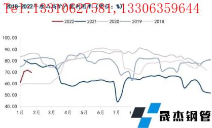 圖-1 2018-2022年唐山地區(qū)高爐產(chǎn)能利用率走勢