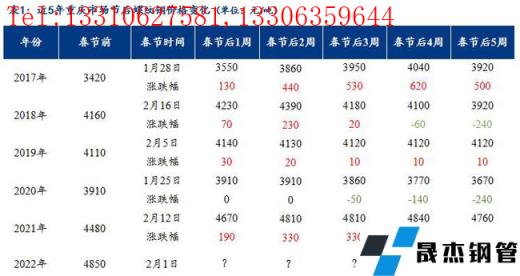 免責聲明:本網站(山東聊城晟杰無縫鋼管廠m.cars-guide.cn)刊載的“近5年春節前后重慶螺紋鋼價格和庫存走勢”等均源于網絡,版權歸原作者所有,且僅代表原作者觀點,本文所載信息僅供參考。轉載僅為學習與交流之目的,如無意中侵犯您的合法權益,請及時聯系刪除。本網站刊登此篇文章并不意味著本站贊同其觀點或證實其內容的真實性,我們不對其科學性、嚴肅性等作任何形式的保證。如果侵犯了您的版權,請盡快聯系我們予以撤銷,謝謝合作!
