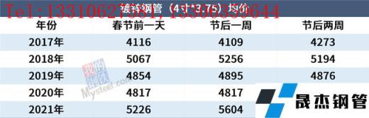 免責聲明:本網站(山東聊城晟杰無縫鋼管廠m.cars-guide.cn)刊載的“近5年春節前后全國鋼材_無縫鋼管市場走勢”等均源于網絡,版權歸原作者所有,且僅代表原作者觀點,本文所載信息僅供參考。轉載僅為學習與交流之目的,如無意中侵犯您的合法權益,請及時聯系刪除。本網站刊登此篇文章并不意味著本站贊同其觀點或證實其內容的真實性,我們不對其科學性、嚴肅性等作任何形式的保證。如果侵犯了您的版權,請盡快聯系我們予以撤銷,謝謝合作!