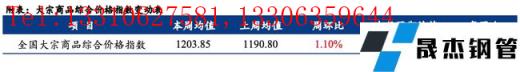 全國(guó)大宗商品綜合價(jià)格指數(shù)均值為1203.85,環(huán)比上升,增幅1.10%(前值2.53%);同比上升,增幅18.17%(前值16.20%)。