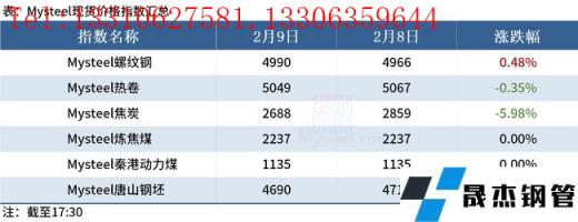 免責聲明:本網站(山東聊城晟杰無縫鋼管廠m.cars-guide.cn)刊載的“2022年02月09日晚餐:黑色期貨全線跳水,鋼坯利潤升至345元”等均源于網絡,版權歸原作者所有,且僅代表原作者觀點,本文所載信息僅供參考。轉載僅為學習與交流之目的,如無意中侵犯您的合法權益,請及時聯系刪除。本網站刊登此篇文章并不意味著本站贊同其觀點或證實其內容的真實性,我們不對其科學性、嚴肅性等作任何形式的保證。如果侵犯了您的版權,請盡快聯系我們予以撤銷,謝謝合作!