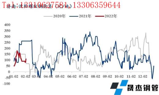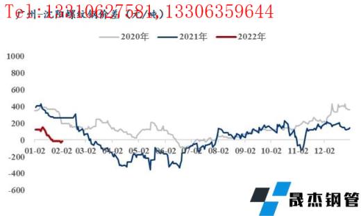 2、節(jié)后開市東北地區(qū)螺紋價格在京津大幅上漲以及無縫厚壁鋼管廠家的集體上調(diào)下累計上漲140-160元/噸,漲后價格已經(jīng)明顯高于華東華南地區(qū),從利潤角度出發(fā)無縫厚壁鋼管廠家更傾向于本地化銷售;截至2月6日東北螺紋鋼庫存約70.3萬噸較節(jié)前增加19.3萬噸同比增加3.9萬噸,盤線庫存約20.8萬噸較節(jié)前增加6.4萬噸同比增加13.7萬噸,從省份來看遼寧地區(qū)的庫存壓力整體較大,黑吉尚可。同時今年春節(jié)時間較早,離需求啟動還有近一個月的時間,因此即使在南方價格不具優(yōu)勢的情況下,本地無縫厚壁鋼管廠家或繼續(xù)保持較高南下比例,2月份的實發(fā)量或高于計劃水平。