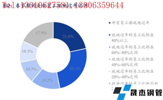據(jù)調(diào)研,春節(jié)期間所有員工都放假停工的企業(yè)占調(diào)研樣本比例達到63.2%,放假停工的員工比例在80%以上的企業(yè)樣本占比達到20.9%,同時放假停工的員工比例不到20%的企業(yè)僅占比3.3%。