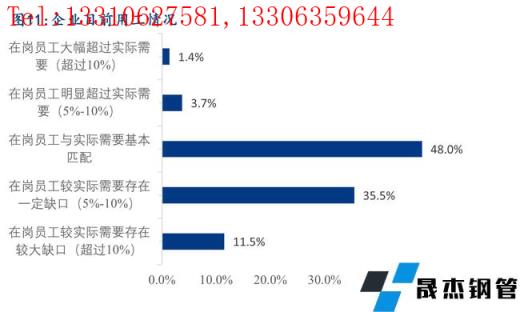 6、目前企業(yè)在崗員工人數(shù)與實際需求基本匹配的占比為48.0%,35.5%的企業(yè)目前在崗員工人數(shù)與實際需求相比存在少量的缺口,46.6%的企業(yè)在未來一段時間內(nèi)有增加用工人數(shù)的計劃,由此可見未來一段時間內(nèi)行業(yè)用工需求依然較大,僅僅只有5.1%的企業(yè)未在崗員工人數(shù)超過實際需求,預計未來一段時間會有少量的人員裁減計劃。
