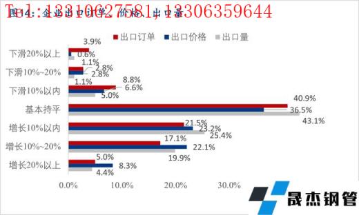據(jù)調(diào)研,35.5%的樣本企業(yè)有出口業(yè)務,出口業(yè)務比重大多集中在20%以內(nèi)。40.9%的企業(yè)出口訂單量較去年同期比基本持平,43.6%的企業(yè)出口訂單量同比有增長,15.5%的企業(yè)出口訂單同比有下降,主要是受全球疫情,以及中美貿(mào)易摩擦的影響。36.5%的企業(yè)出口價格較去年同期比基本持平,53.6%的企業(yè)出口價格同比有上漲,9.9%的企業(yè)出口價格同比出現(xiàn)下降。43.1%的企業(yè)出口量較去年同期比基本持平,49.7%的企業(yè)出口量同比有增長,主要是產(chǎn)品的類別和客戶都有增加,7.2%的企業(yè)出口量同比有所下滑,主要是受外幣貶值以及疫情影響下運輸成本提高的個影響。