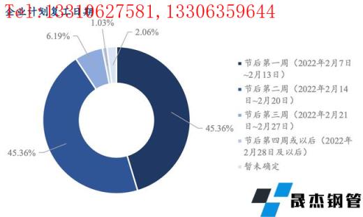 調(diào)研樣本中45.36%的企業(yè)在節(jié)后第一周復(fù)工,45.36%的樣本在節(jié)后第二周復(fù)工,還有1.03%的企業(yè)尚未確定復(fù)工時(shí)間。