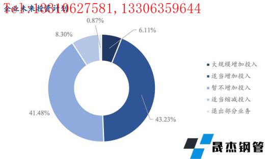 根據(jù)調(diào)研樣本,6.11%的企業(yè)表示未來會(huì)大規(guī)模增加投入,43.23%的企業(yè)表示會(huì)適當(dāng)增加投入,41.48%的企業(yè)表示暫不增加投入,8.30%的企業(yè)表示適當(dāng)縮減投入,還有0.87%的企業(yè)表示會(huì)退出部分業(yè)務(wù)。