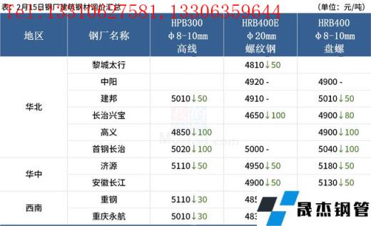 ◎ 2月15日唐山遷安地區普方坯資源出廠含稅下調50元/噸,報4650元/噸。