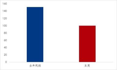 圖2:本周山東市場建筑厚壁無縫鋼管社會庫存年同比變化情況