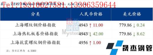 分地區(qū)方面,上海螺紋鋼價(jià)格指數(shù)4943,上漲11.0;上海熱軋板卷價(jià)格指數(shù)4943,下跌42.0。(單位:元/噸)