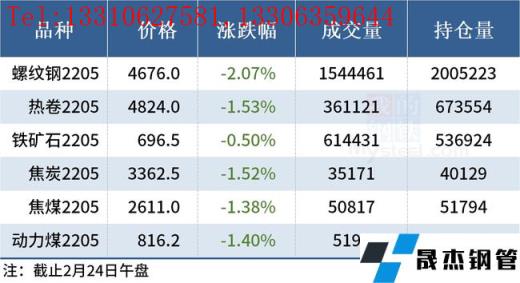 免責聲明:本網站(山東聊城晟杰無縫鋼管廠m.cars-guide.cn)刊載的“2022年02月24日午報:鋼價多數下跌,黑色期貨全線飄綠”等均源于網絡,版權歸原作者所有,且僅代表原作者觀點,本文所載信息僅供參考。轉載僅為學習與交流之目的,如無意中侵犯您的合法權益,請及時聯系刪除。本網站刊登此篇文章并不意味著本站贊同其觀點或證實其內容的真實性,我們不對其科學性、嚴肅性等作任何形式的保證。如果侵犯了您的版權,請盡快聯系我們予以撤銷,謝謝合作!