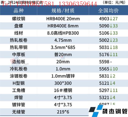 建筑厚壁無縫鋼管:2月24日,全國31個主要城市20mm三級抗震螺紋鋼均價4903元/噸,較上個交易日跌9元/噸。短期來看,一方面當前國際形勢緊張,導致市場情緒偏空;另一方面,近期鐵礦等原料價格下挫,拖累成材價格,加上近期需求恢復不及預期,短期仍然處于供需雙弱格局。因此預計25日國內(nèi)建筑厚壁無縫鋼管或將維持弱勢運行。