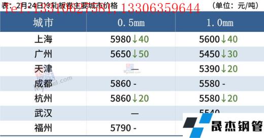 冷軋板卷:2月24日,全國24個主要城市1.0mm冷卷均價5565元/噸,較上個交易日下跌10元/噸。黑色系期貨盤面整體偏弱運行,多數(shù)商家觀望情緒濃厚,成交表現(xiàn)偏差。部分地區(qū)貿(mào)易商表示,目前庫存仍處于較高位,基于3月份訂貨壓力,市場價格普遍存在議價空間。庫存方面,據(jù)不完全統(tǒng)計,現(xiàn)冷軋無縫厚壁鋼管廠家?guī)齑?8.86萬噸,周環(huán)比減少2.08萬噸,社會庫存144.27萬噸,周環(huán)比增加2.24萬噸,周消費量81.60萬噸,環(huán)比增加0.8萬噸。綜合來看,故預計25日國內(nèi)冷軋板卷價格或將穩(wěn)中偏弱運行。