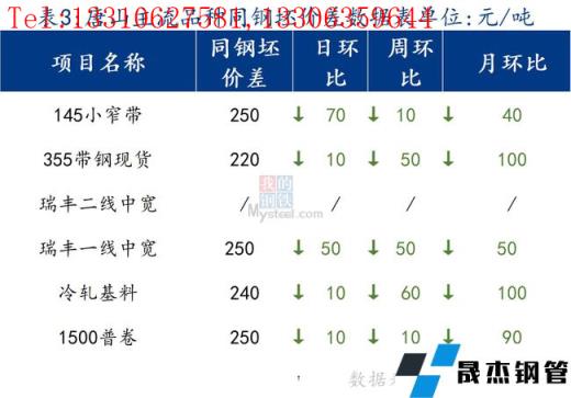 145帶鋼出廠4850元/噸,較上一交易日跌70元/噸。355帶鋼市場現貨價格4820元/噸,較上一交易日跌10元/噸。焊管價格5220元/噸,較上一交易日跌30元/噸,鍍鋅管價格5850元/噸,較上一交易日持平。