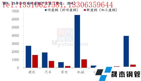由于節后房地產的回升大概率不及預期,那么加工廢鋼的產量節后大概率也不會回升太多,因為加工廢鋼中建筑行業的貢獻量最大(圖9所示)。所以節后受限于需求回升的幅度,那么加工廢鋼的供給可能會偏緊,那么就會加大折舊廢鋼的回收。上面已經介紹過,折舊廢鋼的供應彈性較大,若下游需求好轉,折舊廢鋼的回收量也能夠提升。