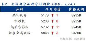 今日全國部分品種均價漲勢放緩,整體漲幅為1~11元/噸。