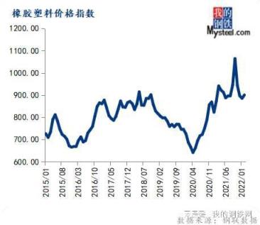 2月份橡膠塑料價格指數(shù)為900.76,環(huán)比上漲1.73%,同比上漲3.17%。