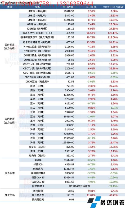 免責聲明:本網站(山東聊城晟杰無縫鋼管廠m.cars-guide.cn)刊載的“2022年03月07日早讀:周末唐山鋼坯累漲60元,國際油價開盤升破130美元”等均源于網絡,版權歸原作者所有,且僅代表原作者觀點,本文所載信息僅供參考。轉載僅為學習與交流之目的,如無意中侵犯您的合法權益,請及時聯系刪除。本網站刊登此篇文章并不意味著本站贊同其觀點或證實其內容的真實性,我們不對其科學性、嚴肅性等作任何形式的保證。如果侵犯了您的版權,請盡快聯系我們予以撤銷,謝謝合作!