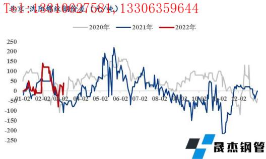 三、南北區域螺紋鋼價差情況: