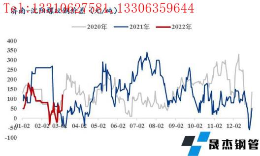 2月螺紋北京-沈陽月均價差+42元/噸,廣州-沈陽月均價差+33元/噸,上海-沈陽月均價差-89元/噸,濟南-沈陽月均價差+40元/噸。雖然本地尚未全面啟動,但本地無縫厚壁鋼管廠家跟漲節奏較快,帶動市場報價整體上漲,即東北價格繼續處在較高水平,南北無合適的價差已經成為常態。