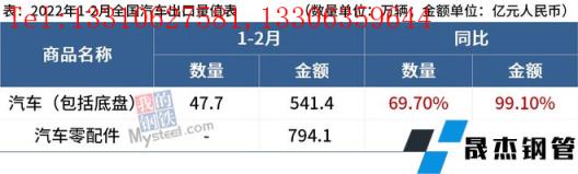 免責聲明:本網站(山東聊城晟杰無縫鋼管廠m.cars-guide.cn)刊載的“海關總署:1-2月中國出口汽車47.7萬輛,同比增69.70%”等均源于網絡,版權歸原作者所有,且僅代表原作者觀點,本文所載信息僅供參考。轉載僅為學習與交流之目的,如無意中侵犯您的合法權益,請及時聯系刪除。本網站刊登此篇文章并不意味著本站贊同其觀點或證實其內容的真實性,我們不對其科學性、嚴肅性等作任何形式的保證。如果侵犯了您的版權,請盡快聯系我們予以撤銷,謝謝合作!