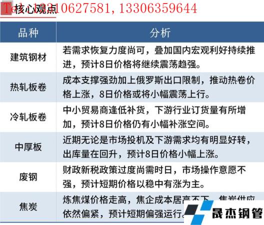 建筑厚壁無縫鋼管:3月7日,全國31個主要城市20mm三級抗震螺紋鋼均價5037元/噸,較上個交易日上漲91元/噸。短期來看,供應方面,隨著冬奧會的結束,3月產量回升是確定性事件,在殘奧會及兩會結束后,產量的回升速度將進一步加快;成交方面,進入金3月下游終端陸續復工,現貨價格跟隨期貨價格反彈后,成交也較2月逐漸進入正軌。綜合來看,在3月市場需求不斷回暖的情況下,還需繼續驗證需求能否大規模持續復蘇,若需求恢復力度尚可,疊加國內宏觀利好持續推進,預計8日國內建筑厚壁無縫鋼管價格將繼續震蕩趨強。