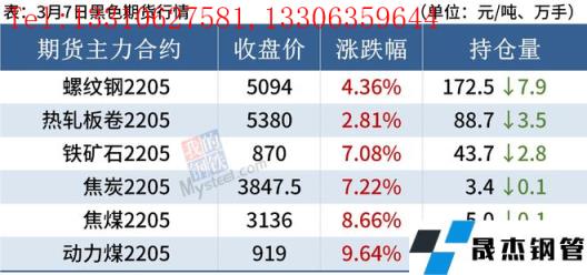 熱軋板卷:3月7日,全國24個主要城市4.75mm熱軋板卷均價5289元/噸,較上個交易日上漲111元/噸。由于對能源供應的擔憂,大宗商品類品種普遍抬升,雙焦、鐵礦石等原料端的上漲帶動了成品材的價格上漲,成本支撐強勁。同時,俄羅斯熱卷出口限制,供應的擔憂再一次推動了熱卷價格的上漲,明顯帶動國內價格的上漲。8日全國熱軋板卷價格或將小幅震蕩上行。