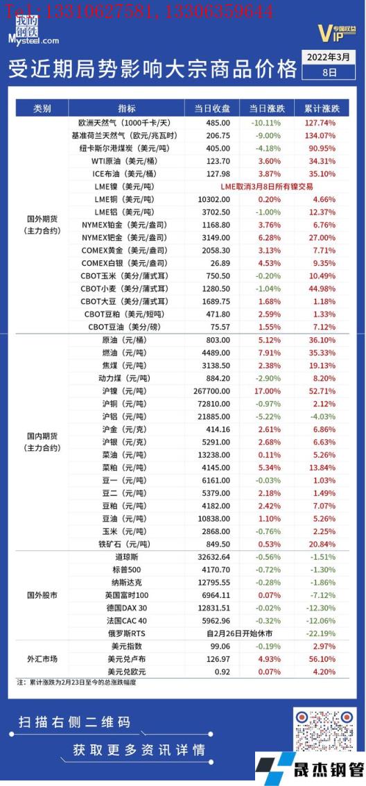 近期,受國際局勢影響,全球金融及大宗商品市場出現較大波動。3月8日,倫敦金屬交易所(LME)宣布暫停鎳交易并取消當日早間已執行的鎳交易,推遲了原定于3月9日的鎳合約交割,倫鎳“逼空”按下暫停鍵。匯總情況如下: