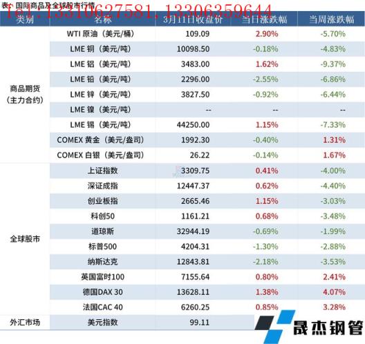 金融市場:本周主要商品期貨除黃金、白銀上漲外,其余品種價格均下跌;全球股市中,中國股市、美股下跌,歐股上漲;美元指數99.11,上漲0.61%。