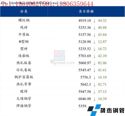 3月14日普鋼絕對(duì)價(jià)格指數(shù)變化:綜合指數(shù)5173.72,下跌51.11;螺紋鋼指數(shù)4919.18,下跌44.32;線材指數(shù)5253.36,下跌40.88;熱軋板卷指數(shù)5060.97,下跌82.06;冷軋板卷指數(shù)5545.47,下跌41.61;中厚板指數(shù)5157.56,下跌43.84。